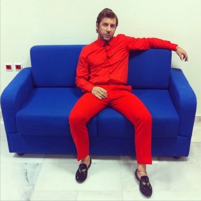 Για την εμφάνιση του Γιώργου ο Al Giga επέλεξε ένα πορτοκαλί σύνολο από τον οίκο Givenchy καθώς και παπούτσια Giuseppe Zanotti ειδική παραγγελία, τα οποία ονομάζονται SPIDER MAN SWAROVSKI SHOES. Μας άρεσε πολύ η έντονη απόχρωση για την επιλογή του outfit. Ήταν μια γενναία πινελιά χρώματος και βέβαια η νότα του διαφορετικού που περιμέναμε από τον Γιώργο.