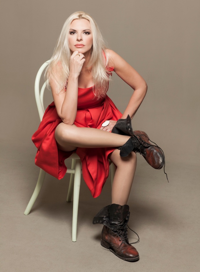 Η εκκεντρική παρουσιάστρια, μάλιστα, φωτογραφήθηκε για τις ανάγκες της εκπομπής της φορώντας μια κόκκινη τουαλέτα και στρατιωτικές αρβύλες.