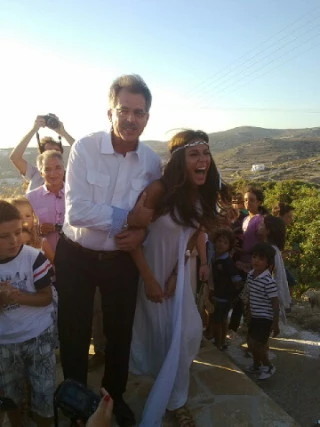 Ένα απλό λευκό μάξι φόρεμα επέλεξε για το γάμο της η Κατερίνα Παπουτσάκη, ενώ ο γαμπρός Παναγιώτης Πιλαφάς φόρεσε απλώς ένα λευκό πουκάμισο...